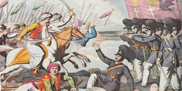 Ο διοικητής των Τούρκων Καρά Φέιζ τους ζήτησε να παραδοθούν δίνοντάς τους υπόσχεση ότι θα τους χαρίσει τις ζωές. Οι Ιερολοχίτες του απάντησαν: «Οι Έλληνες δεν παραδίδονται». Έτσι, ο Ιερός Λόχος δέχτηκε επίθεση από το τουρκικό ιππικό, αρνούμενος το κάλεσμα να παραδοθεί, με αποτέλεσμα να υποστεί σοβαρές απώλειες.